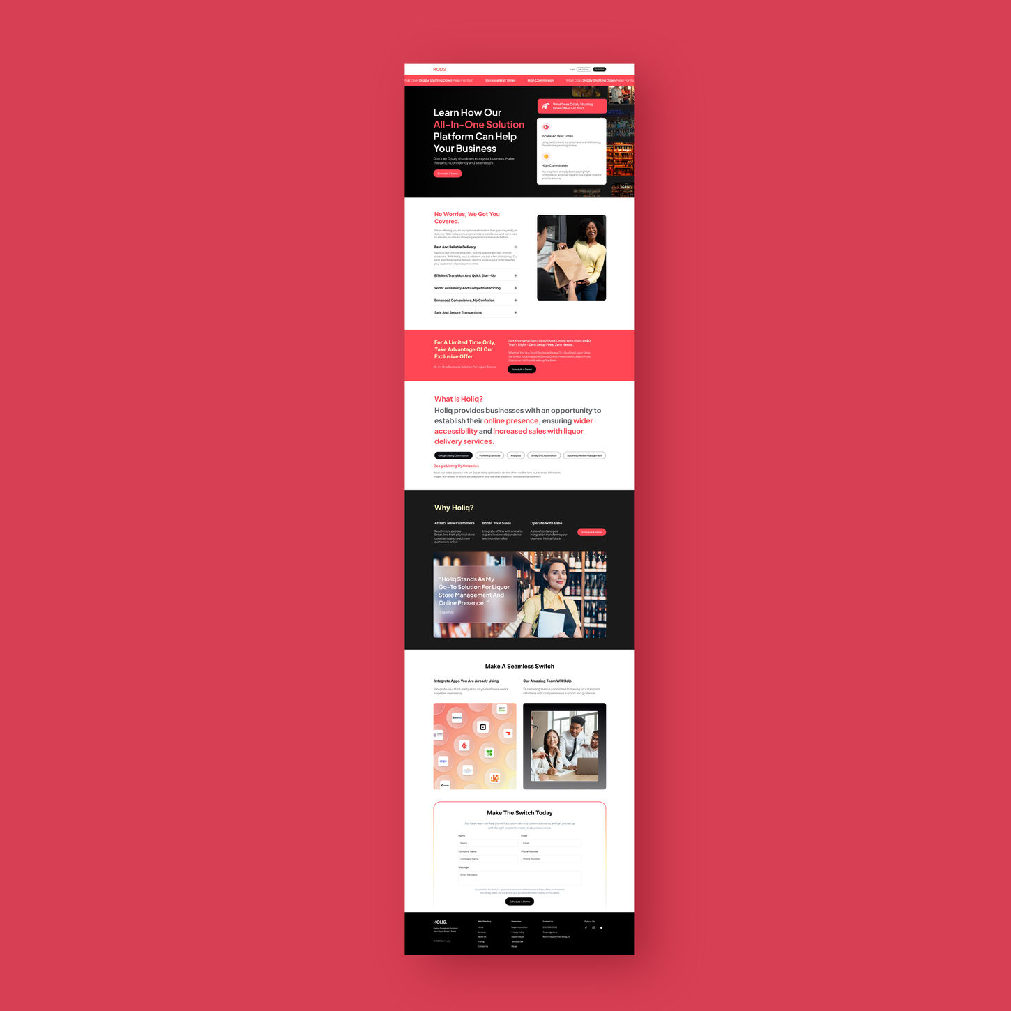 The result was a responsive website that not only effectively conveyed the pain points of the drizzly shutdown but also showcased what Holiq had to offer for business owners effected by the shutdown. This project demonstrates my proficiency in web design, content integration, and creating seamless user experiences, making it a valuable addition to my portfolio.